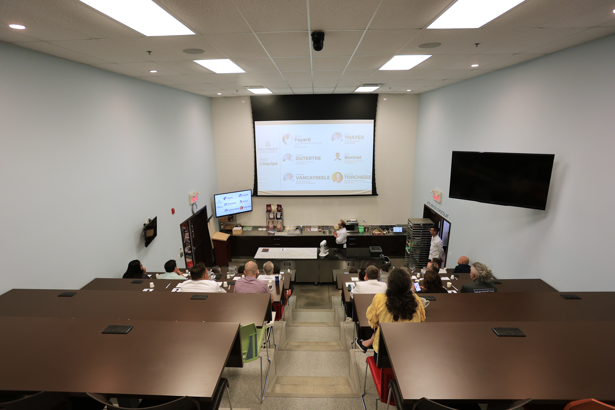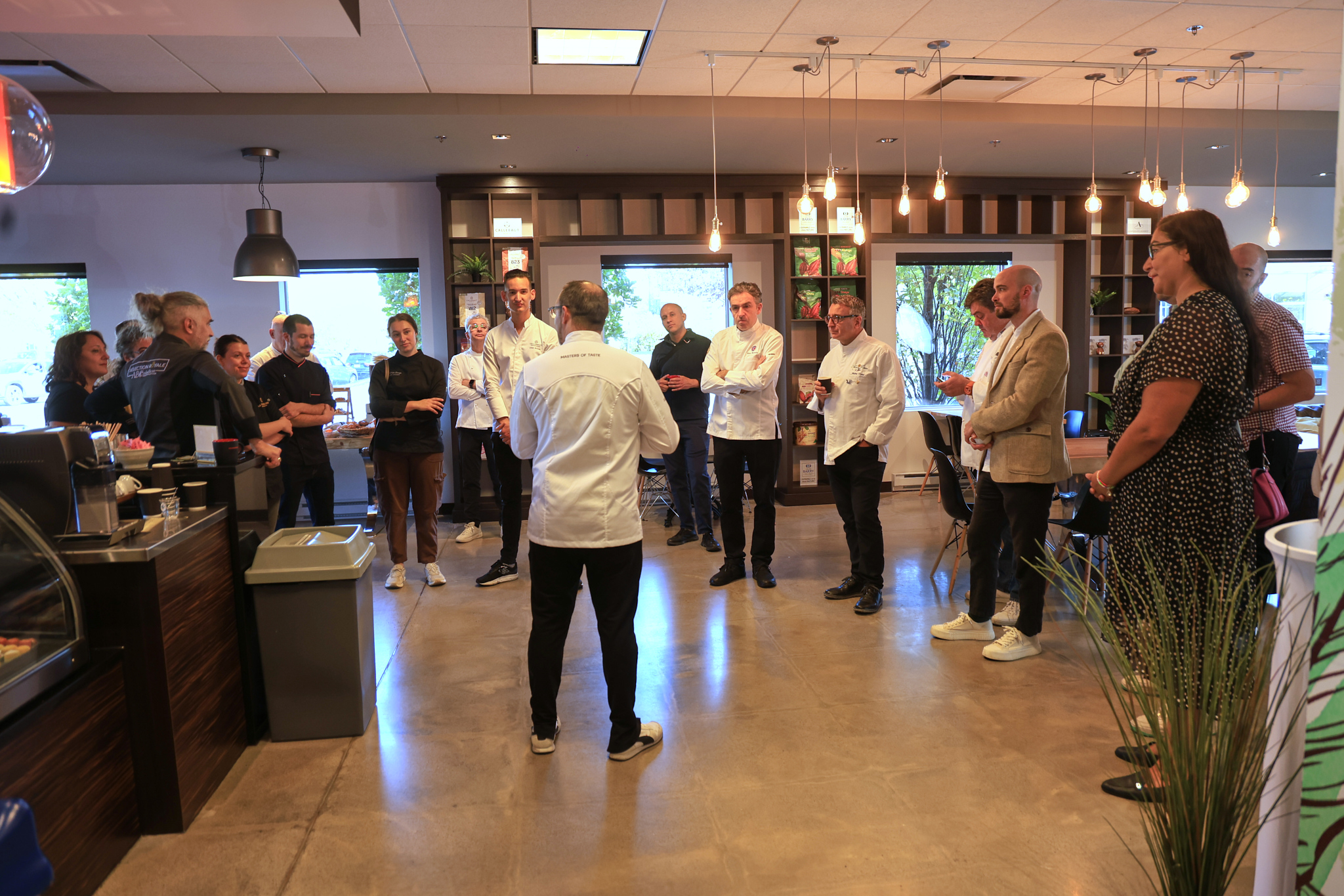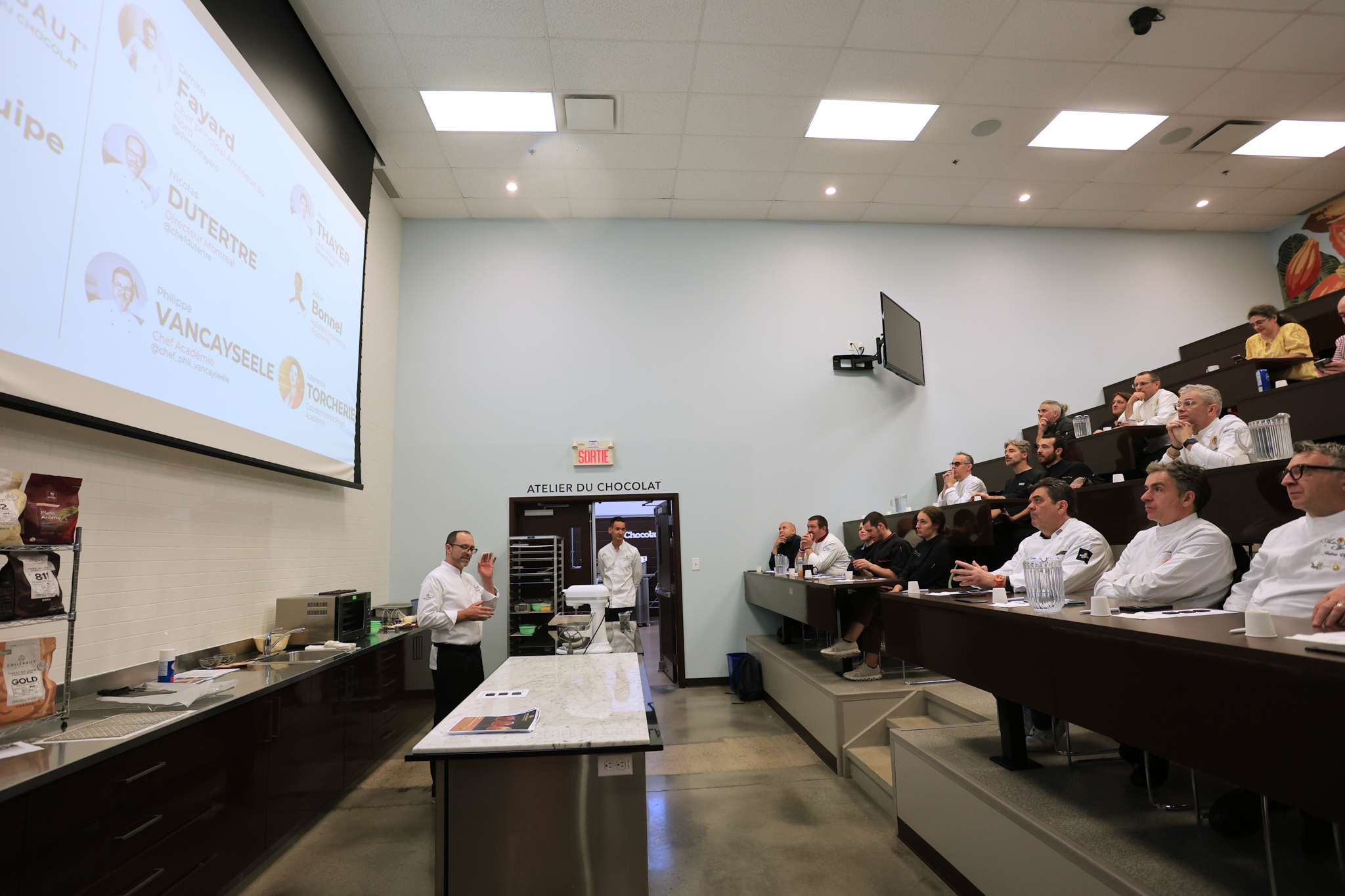 The following morning, guests were welcomed to the Callebaut Chocolate Academy™ Canada, a hub dedicated to the excellence of chocolate craftsmanship. Since its founding, the Academy has supported pastry chefs, chocolatiers, and artisans in mastering the art of chocolate through hands-on workshops and creative exploration. Under the guidance of Chef Nicolas Dutertre, participants attended an engaging chocolate demonstration and breakfast, discovering techniques that blended tradition, precision, and innovation — a testament to the Académie’s mission to share and elevate culinary knowledge across generations.