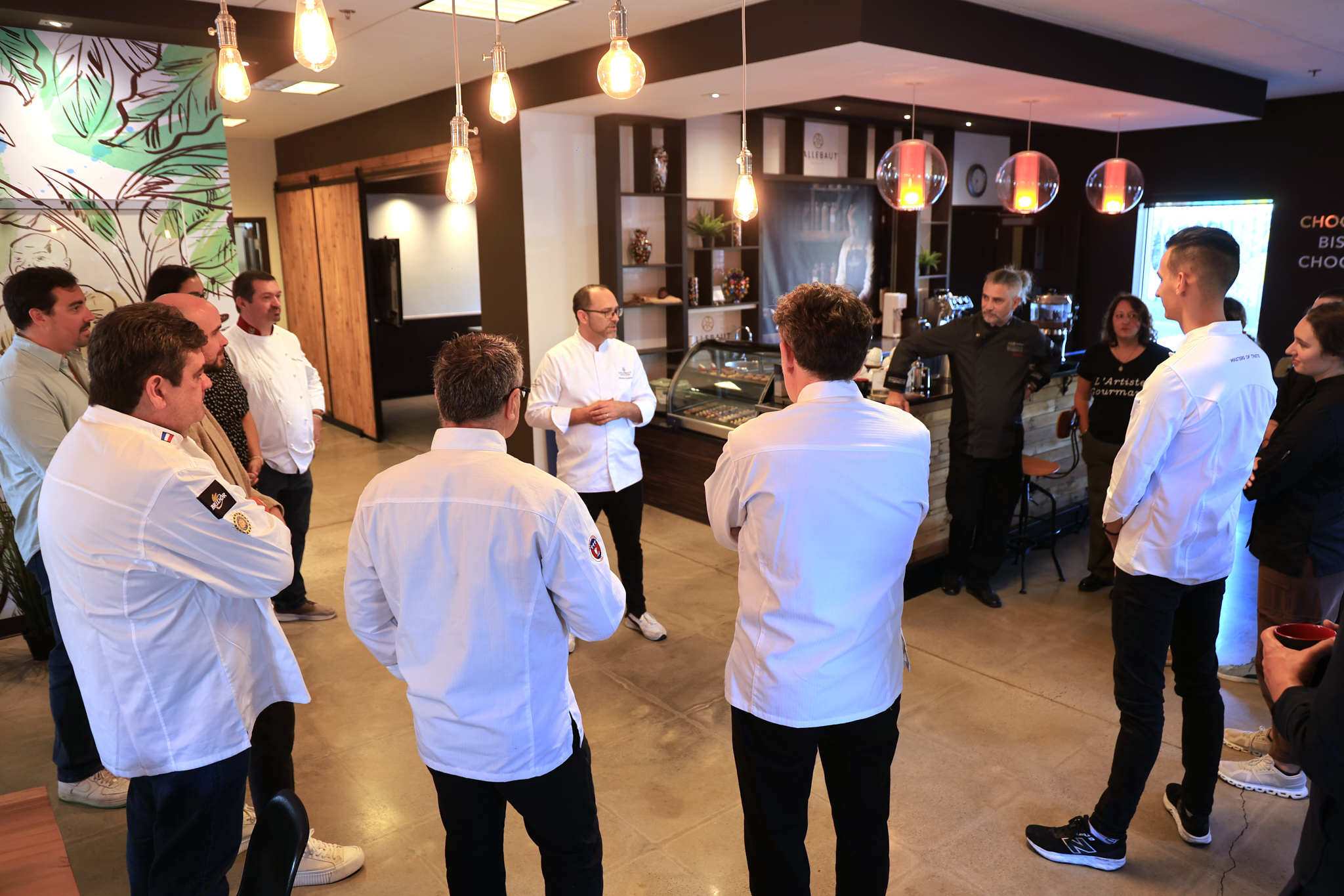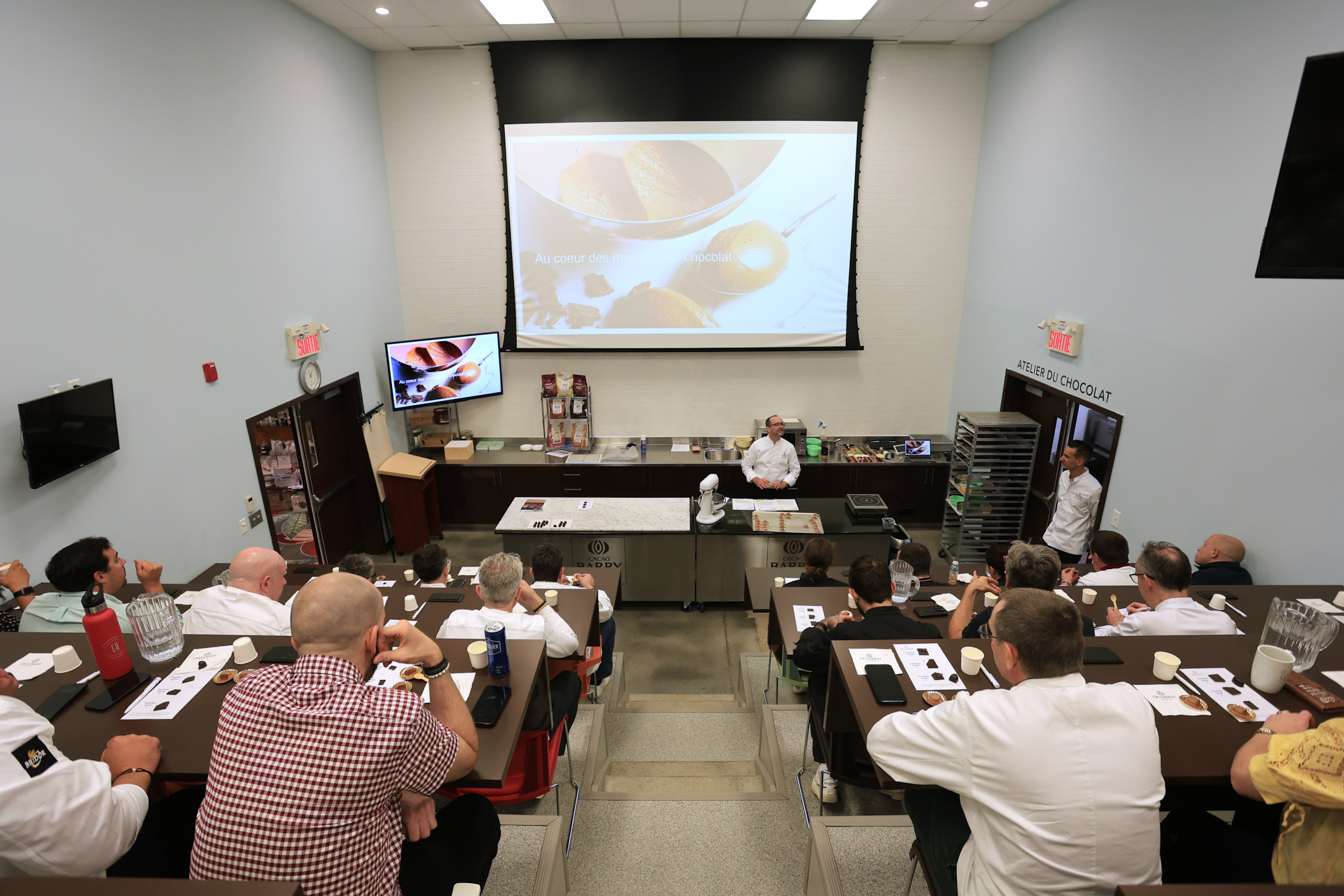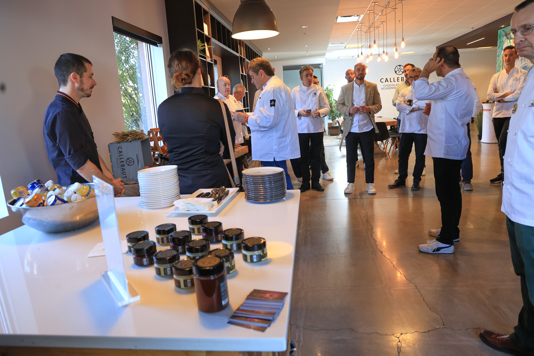 The following morning, guests were welcomed to the Callebaut Chocolate Academy™ Canada, a hub dedicated to the excellence of chocolate craftsmanship. Since its founding, the Academy has supported pastry chefs, chocolatiers, and artisans in mastering the art of chocolate through hands-on workshops and creative exploration. Under the guidance of Chef Nicolas Dutertre, participants attended an engaging chocolate demonstration and breakfast, discovering techniques that blended tradition, precision, and innovation — a testament to the Académie’s mission to share and elevate culinary knowledge across generations.