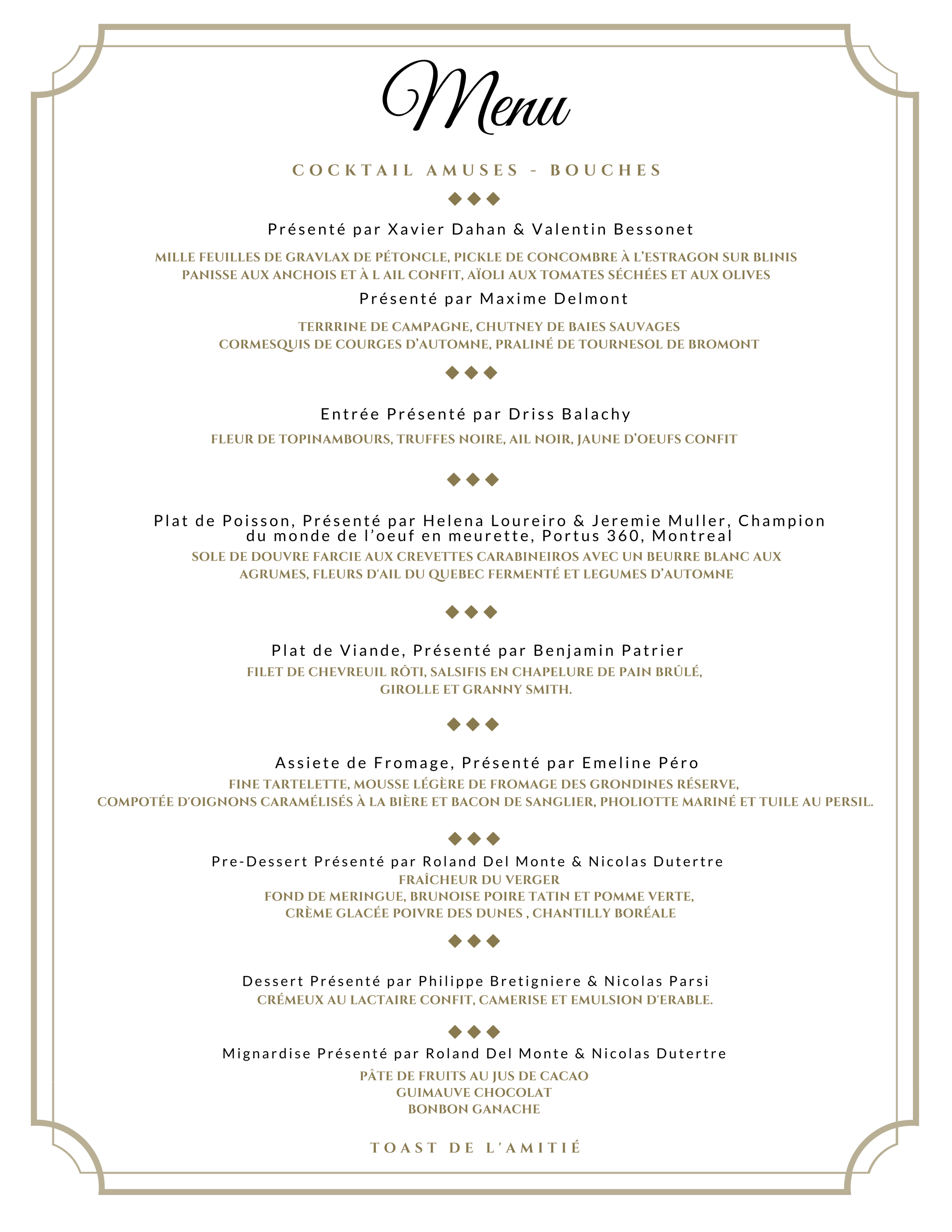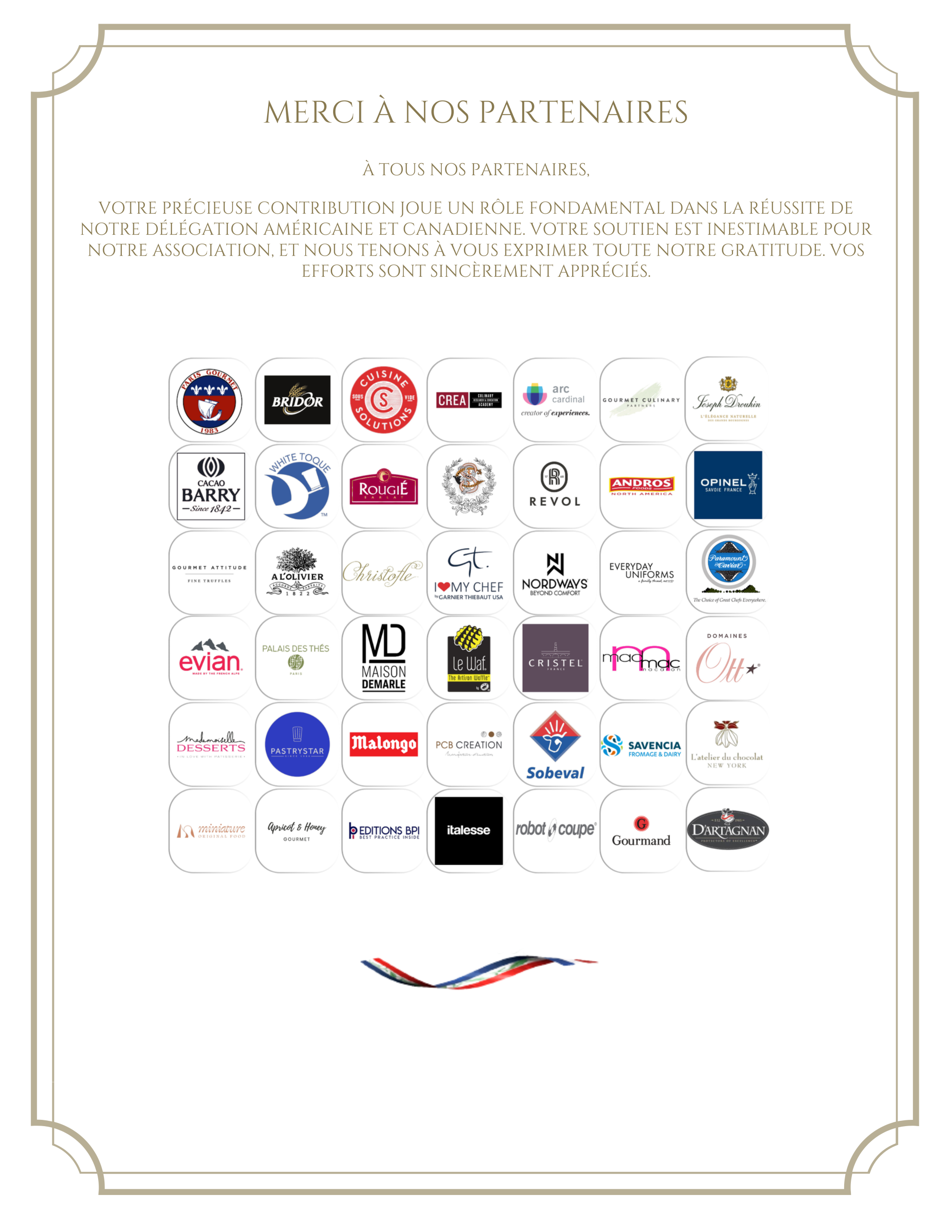 To the Canadian Team for their commitment and dedication on the organization of this prestigious weekend and to our guests for attending and support our Academie Culinaire de France and our delegation USA & Canada.